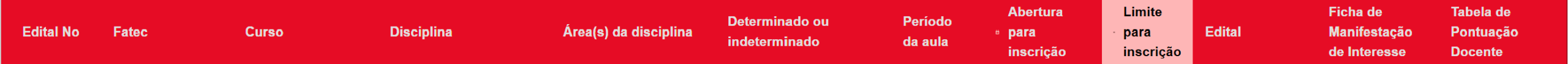 Os editais a seguir estão ordenados por data limite de inscrição.