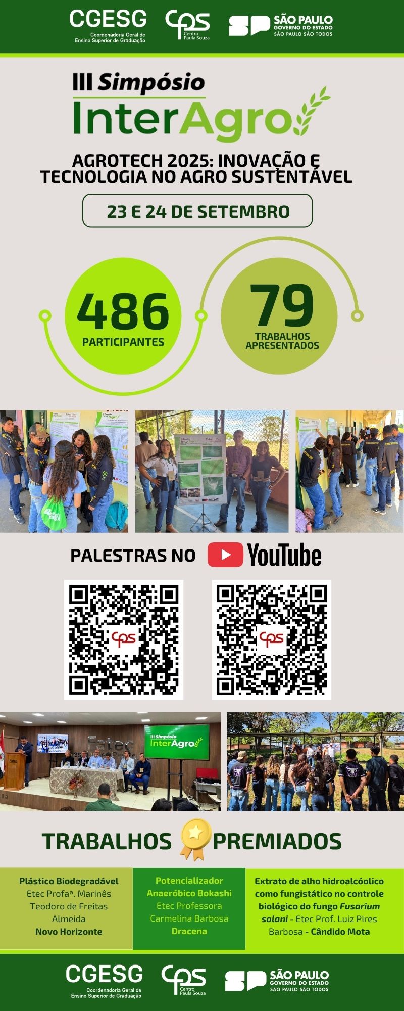 Nos dias 23 e 24 de setembro, na Etec Prof. Dr. Antônio E. de Toledo em Presidente Prudente aconteceu a 3ª edição do Simpósio InterAgro.